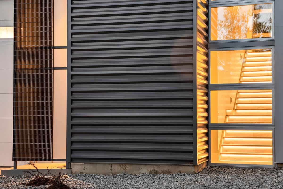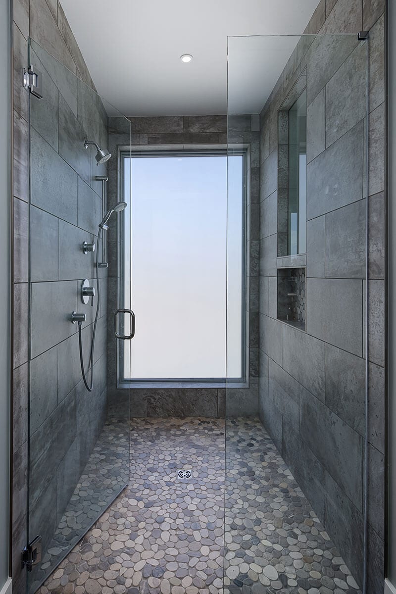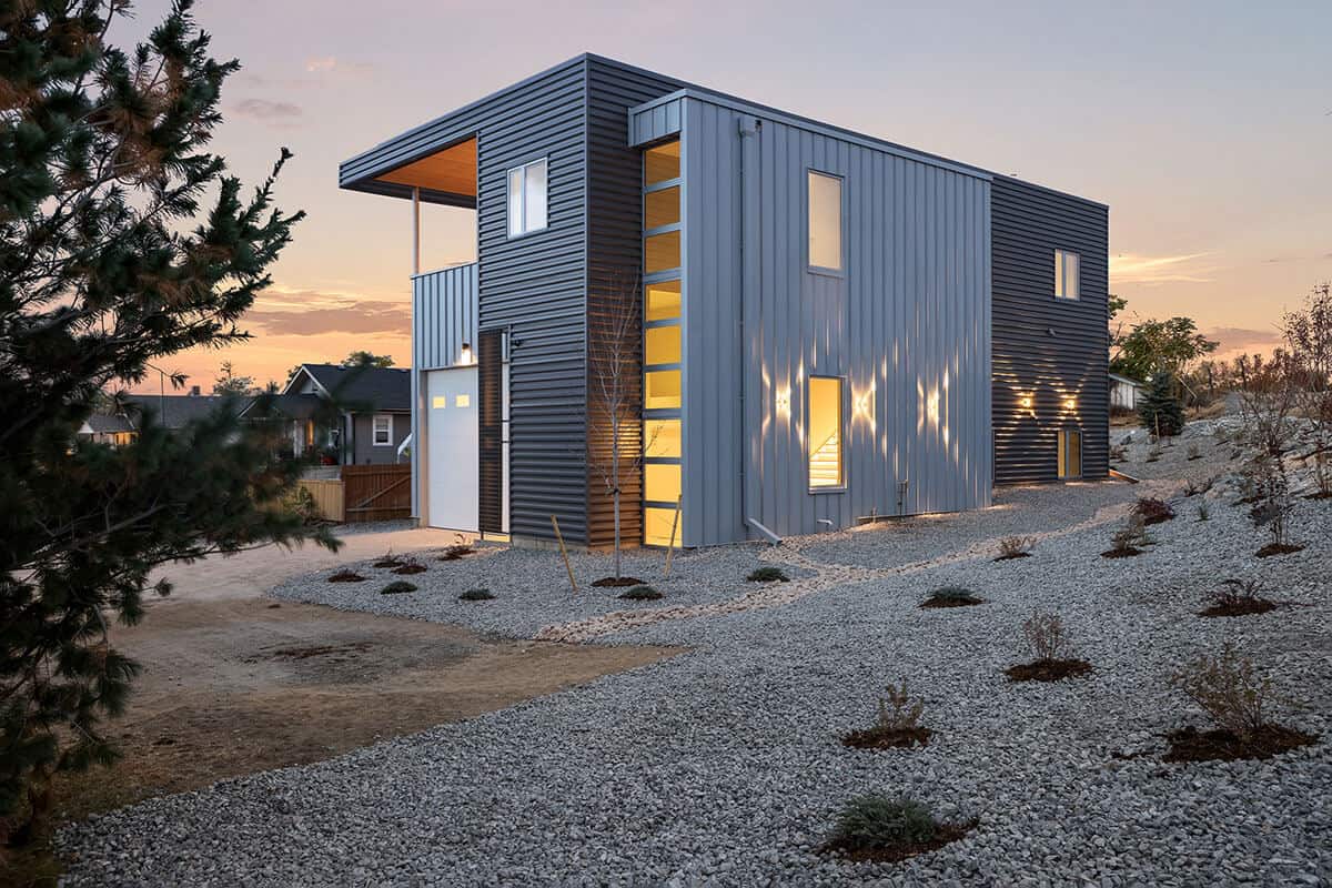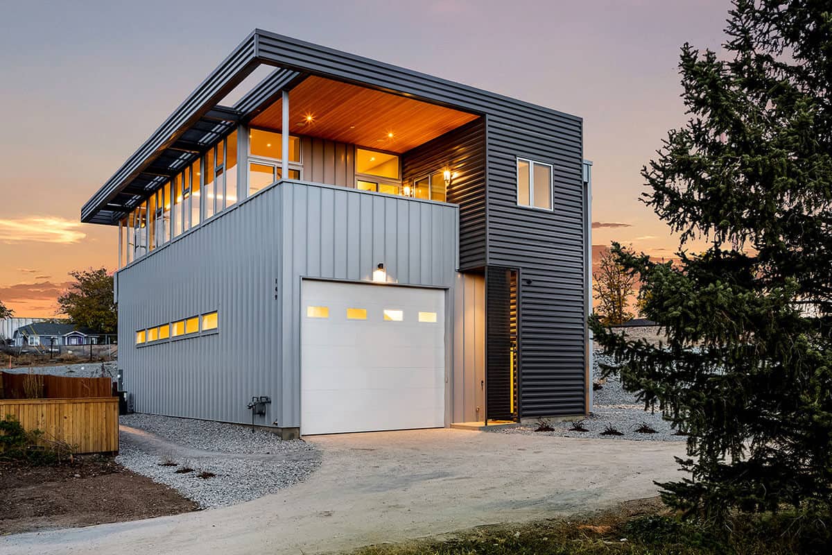 This Industrial Contemporary design uniquely provides storage for the client’s 40′ recreation vehicle and shop needs below a modern penthouse flat overlooking the city of Denver.