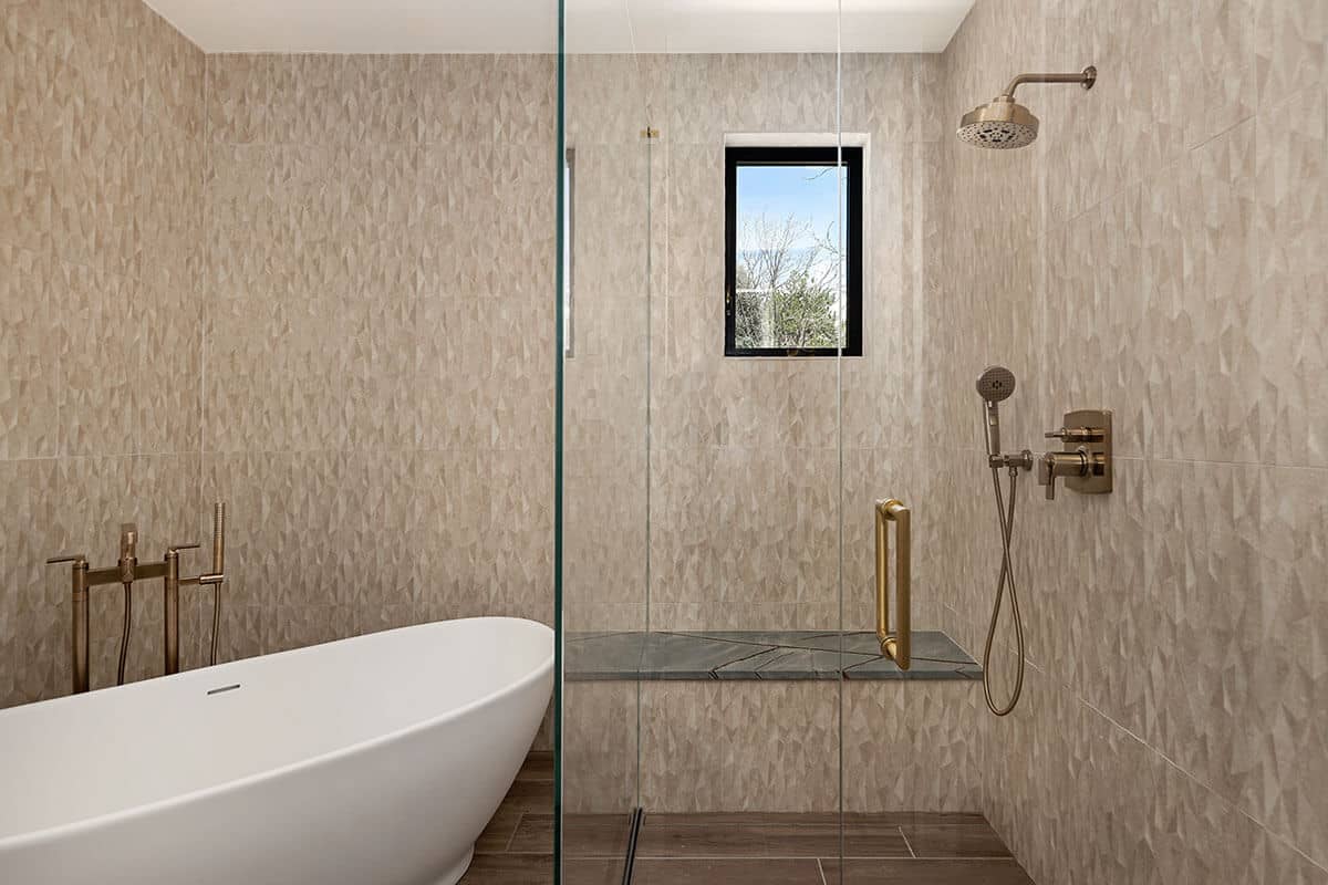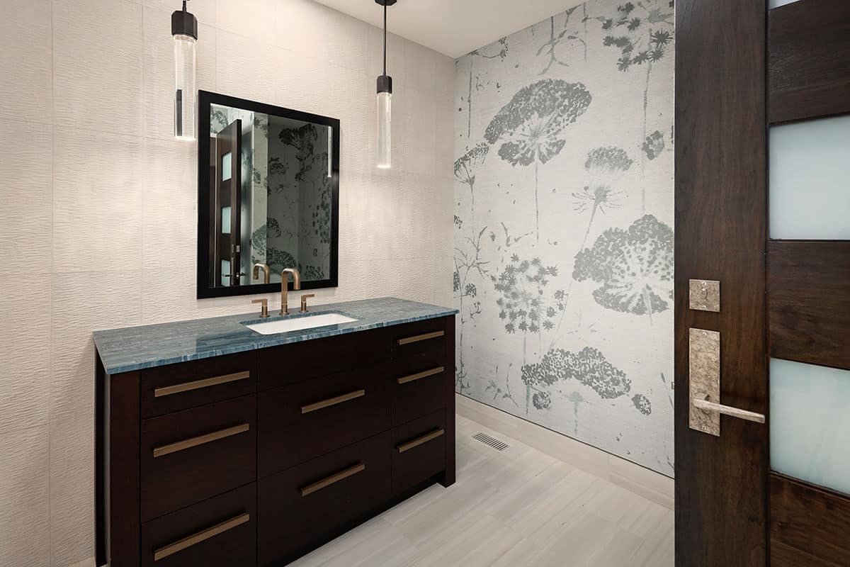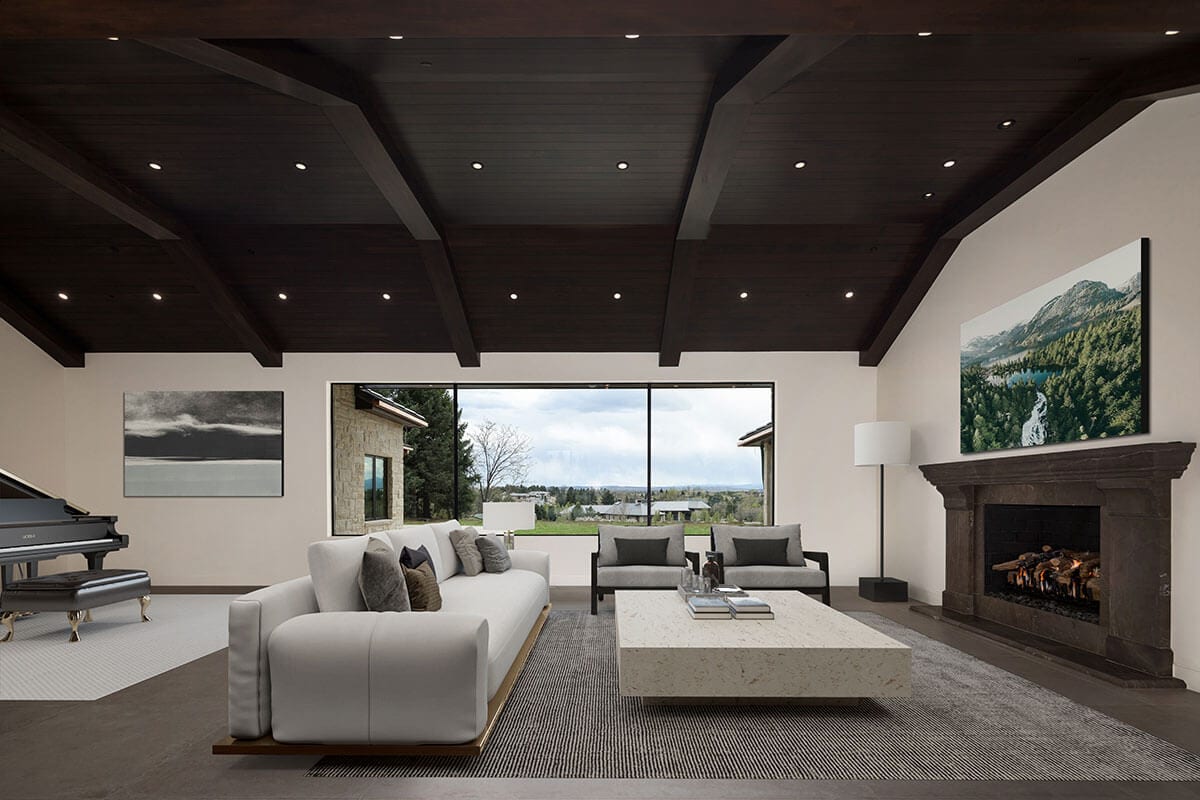 contemporary living area with block marble table, fireplace, dark wood ceiling and piano ONE Residential Builders Denver traditional meets modern in this living room with dark panel wood ceiling with off-white furniture ONE Residential Builders Denver traditional home with open concept from kitchen including high island, new cabinets into living area with modern furnishings and fireplace ONE Residential Builders Denver open concept home has contemporary finishes with dark ceilings, light walls, and modern furniture ONE Residential Builders Denver nano doors open to large patio from sitting area in contemporary home ONE Residential Builders Denver clean lines in contemporary bathroom with glass shower door, dual sinks, and soak tub ONE Residential Builders Denver contemporary bathroom highlights include copper color fixtures, large tub, and seat in shower ONE Residential Builders Denver contemporary door with dark wood and four glass panels covered by privacy film ONE Residential Builders Denver guest bathroom's contemporary touches include blue-gray countertop, copper colored fixtures and drop lighting ONE Residential Builders Denver