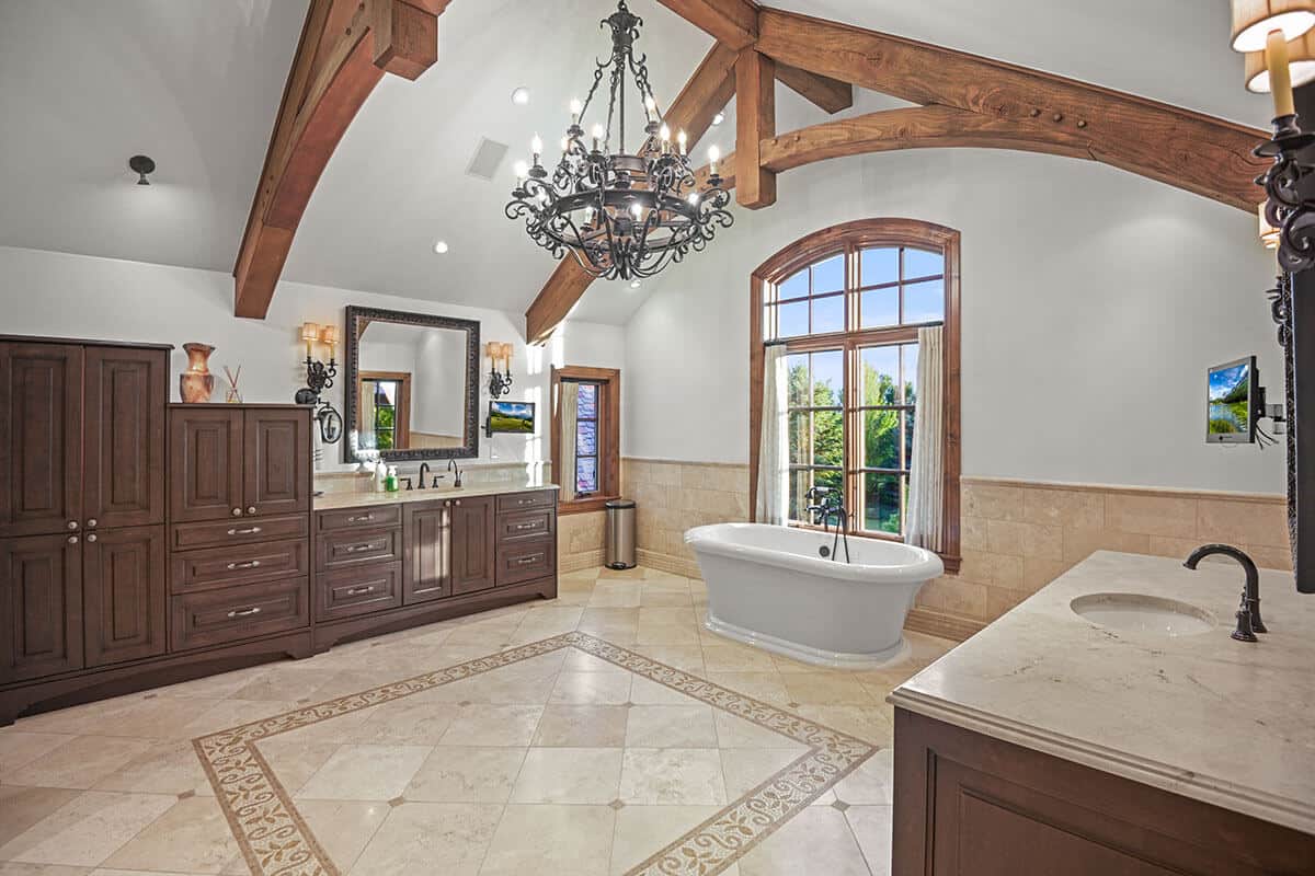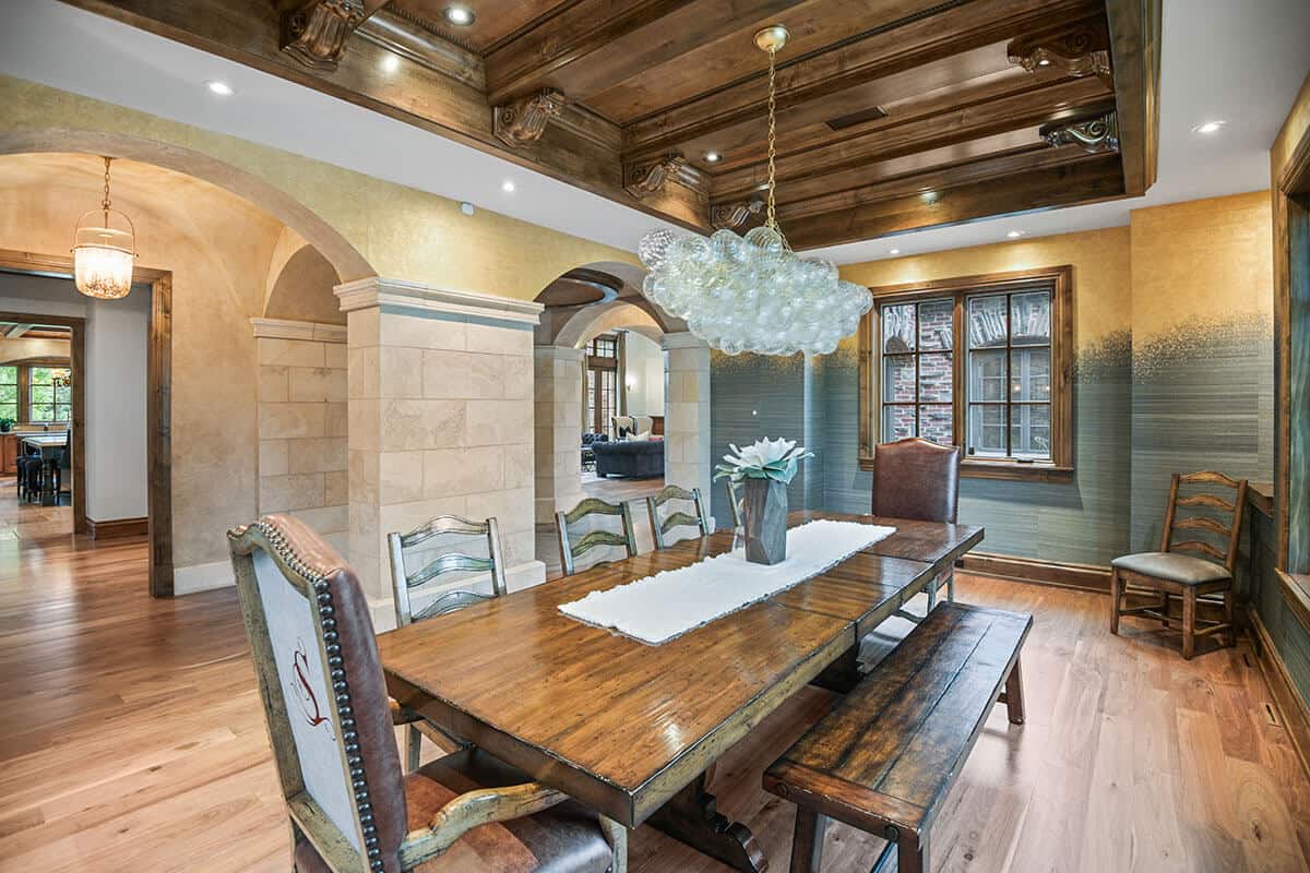 The client’s attendance at the US Open at Wingfoot Golf Club sparked the design vision for this 19,000 sqft home, with its expansive layout and sophisticated aesthetic mirroring the grandeur of the event.   The building’s exterior architectural design, featuring a brilliant combination of granite an brick, is truly stunning.